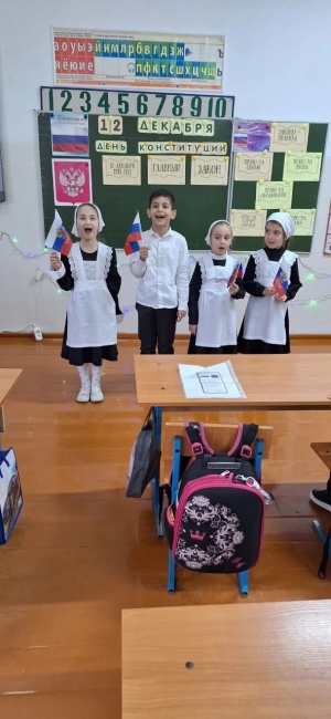 В МБОУ "СОШ с.Виноградное " наши самые маленькие ученики 1 "б" класса, познакомились с основным законом государства. Абекерова Ш.А. провела интересный урок посвящённый 12 декабря. Урок начался с исполнения гимна РФ и ЧР. Она рассказала детям, что ...