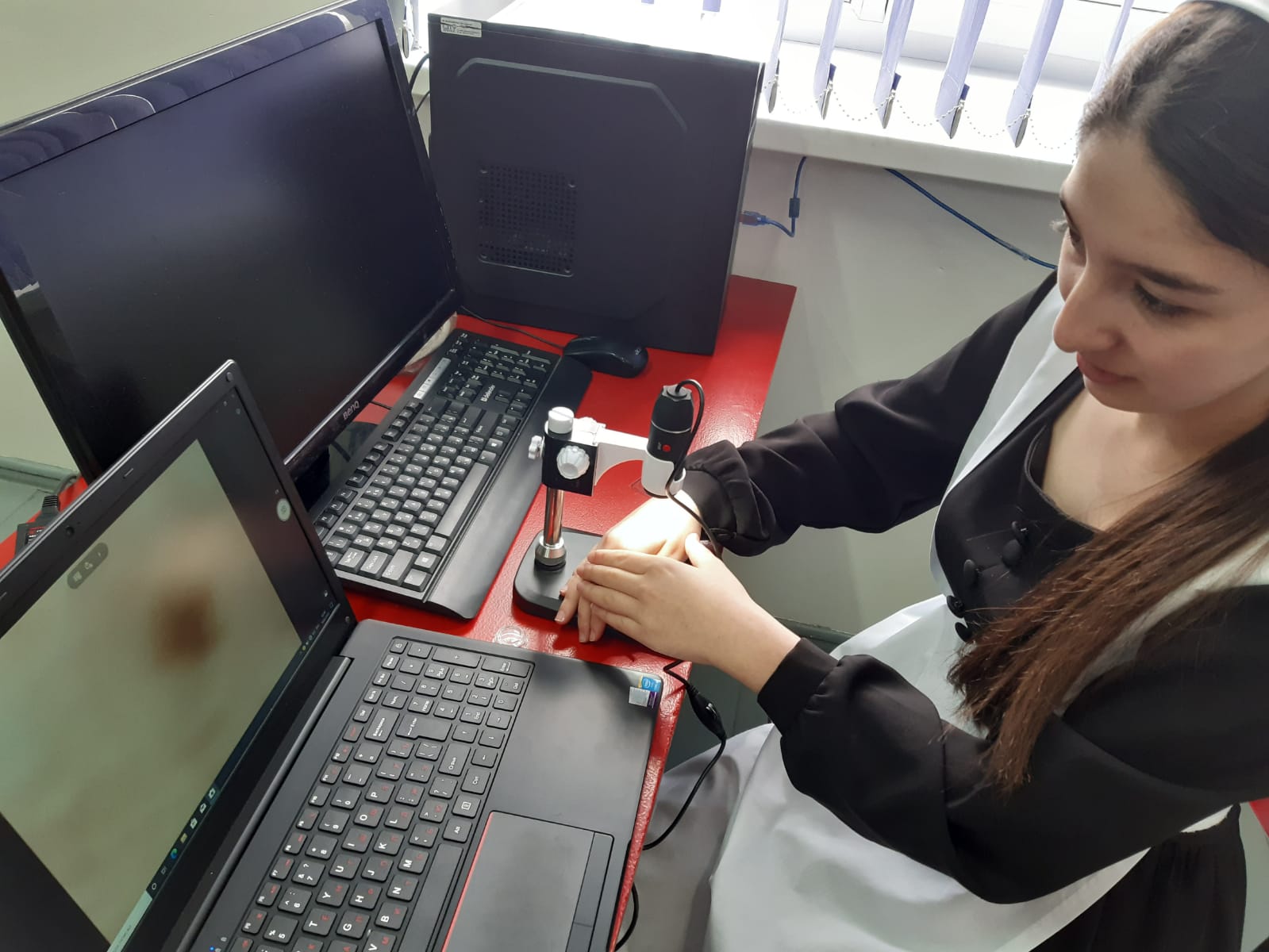провела лабороторную работу по теме: "Строение кожи", с использованием оборудование Точке роста " Релеон Хим-5".