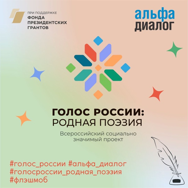 «Голос России: родная поэзия» — новый социально значимый проект центра «Альфа-Диалог» при поддержке Фонда президентских грантов.