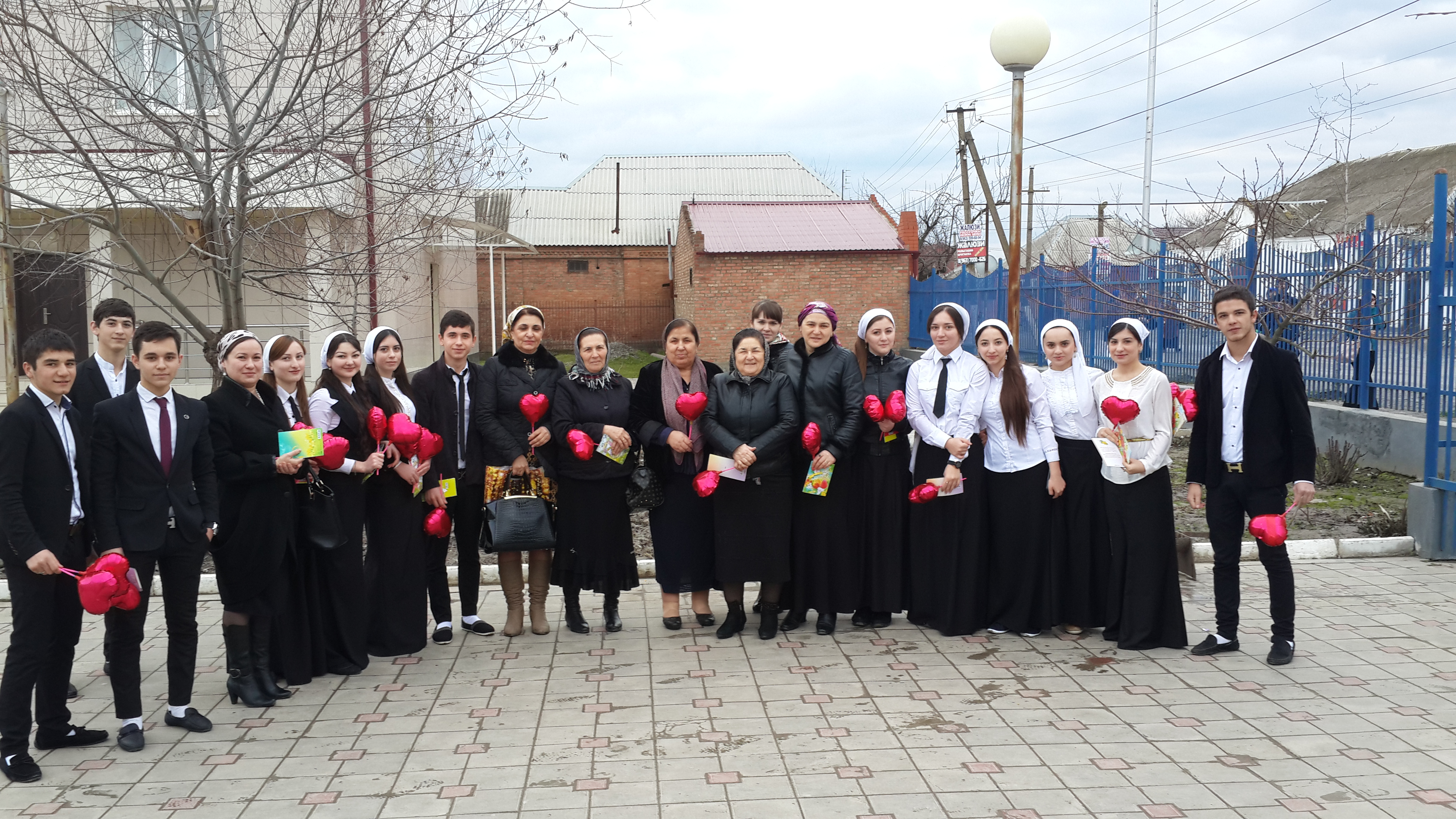 8 Марта спешу в школуУчительницу поздравлять,Волнуюсь, как всегда немного,С собой смогу я совладать!Я пожелаю ей здоровья,И нервы, чтобы берегла,Относимся мы к ней с любовью,Но и тревожим иногда.Труд ценим её безгранично,Ведь знания даёт всем нам,Мы для неё небезразличны,Низкий поклон учителям!Учащиеся 11 класса устроили сюрприз для учителей школы.Утром 6 марта дети встретили учителей у ворот школы с поздравлениями ,стихами.