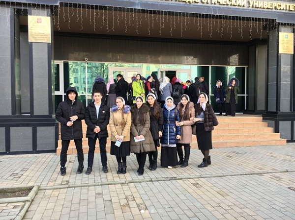 16.12.201716.12.2017г. В Чеченском Государственном Педагогическом Университете прошёл "День открытых дверей " ,учащиеся 11 класса МБОУ "СОШ с.Виноградное" посетили мероприятие И получили возможность: - ознакомиться с лицензией и аккредитацией вуза и Правилами приема в 2018 году; - получить информацию по всему спектру образовательных программ (бакалавриат, специалитет, магистратура, ординатура, аспирантура) и формам дополнительного образования, узнать о возможностях научной и творческой реализации личности в университете; - пообщаться с преподавателями и студентами, познакомиться с материально-технической базой университета (библиотеки, читальные залы, компьютерные классы, спортивные площадки, лаборатории и творческие мастерские и т.д.); - посетить учебные корпуса факультетов, осмотреть лаборатории и ознакомиться с работами студентов и преподавателей ВУЗа .