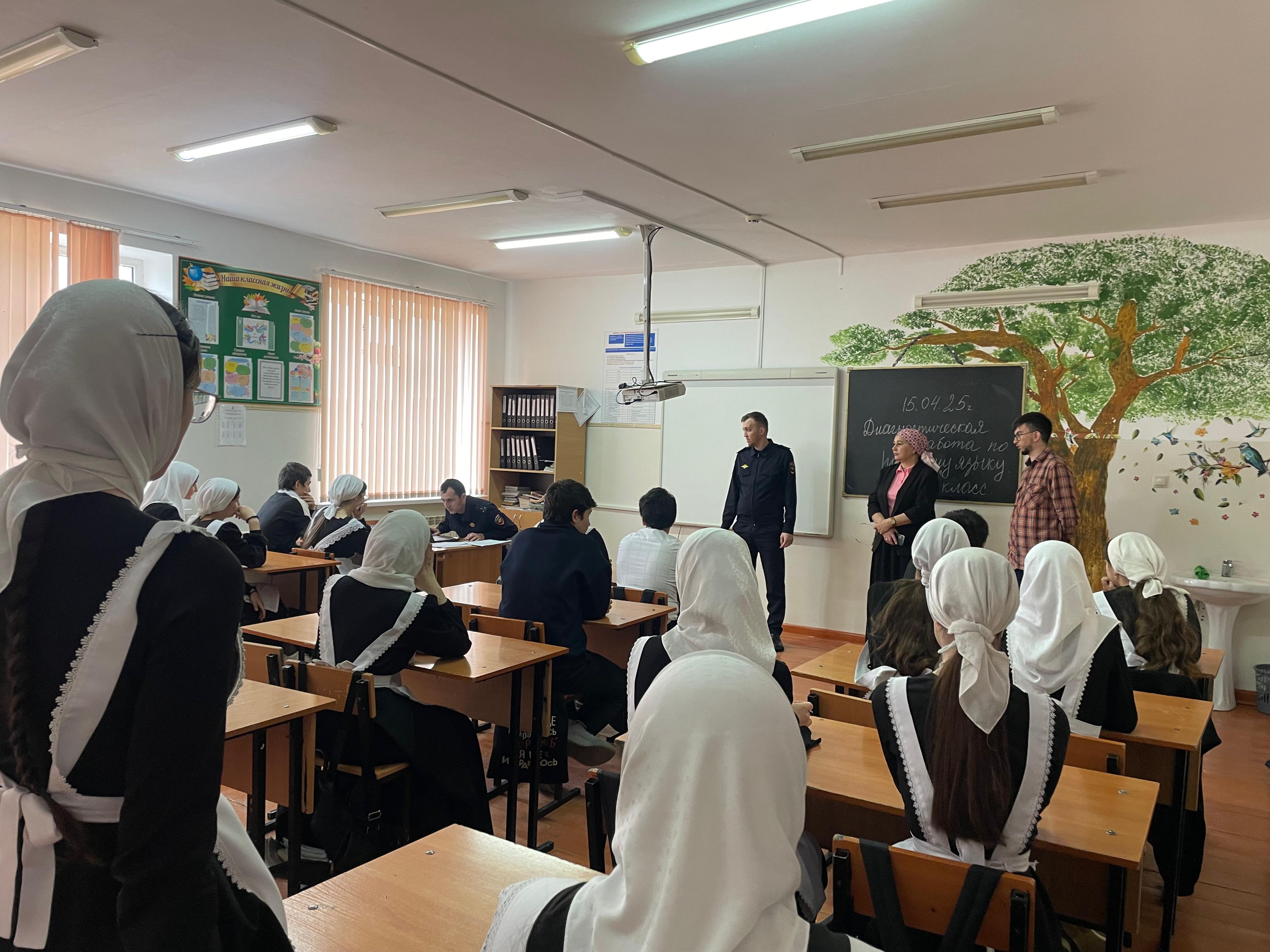 15 апреля 2025 года в школе прошла встреча учащихся с инспектором ОПДН ОМВД России по Грозненскому району ЧР старшим лейтенантом полиции Шидаевым Р.Р. и УУП ОУУПиПДН младшим лейтенантом полиции Ис