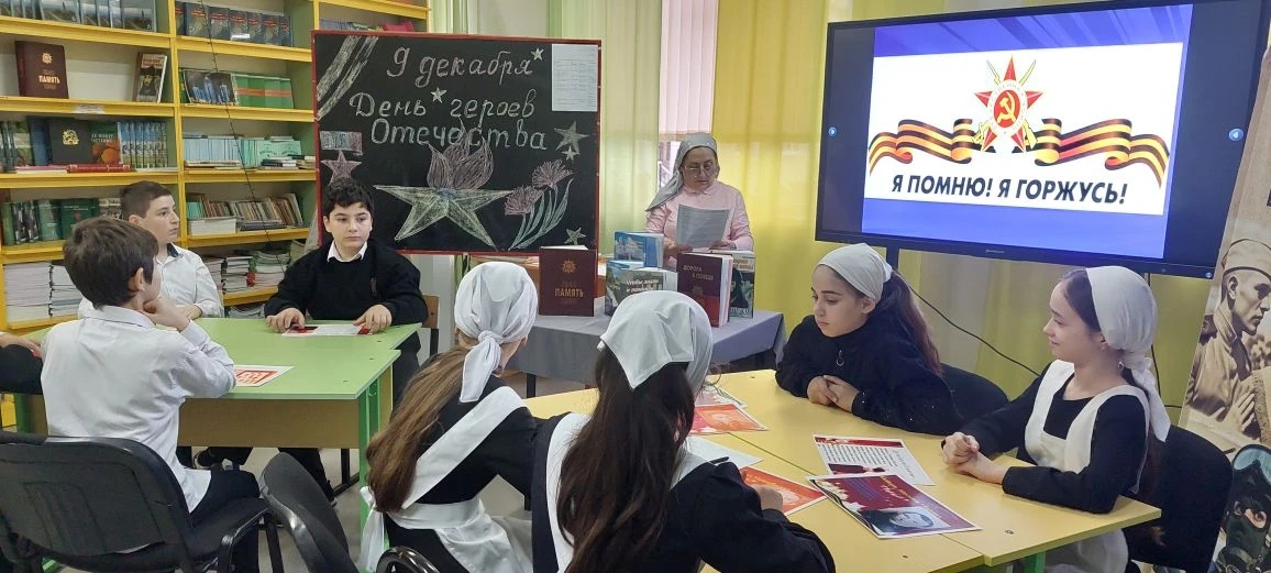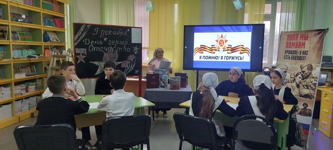 В преддверии 9 декабря "День Героев Отечества" , 03.12.2025г. в МБОУ " СОШ с.Виноградное" учитель истории , Мутаева Рита Вахидовна, провела урок-викторину "Что ты знаешь о Героях Чечни". Учащиеся с интересом приняли участие в этом мероприятии. Было отрадно слышать, что ребята отвечали на заданные вопросы со знанием дела. Девизом урока стало высказывание "Пока мы помним прошлое, у нас есть будущее" .