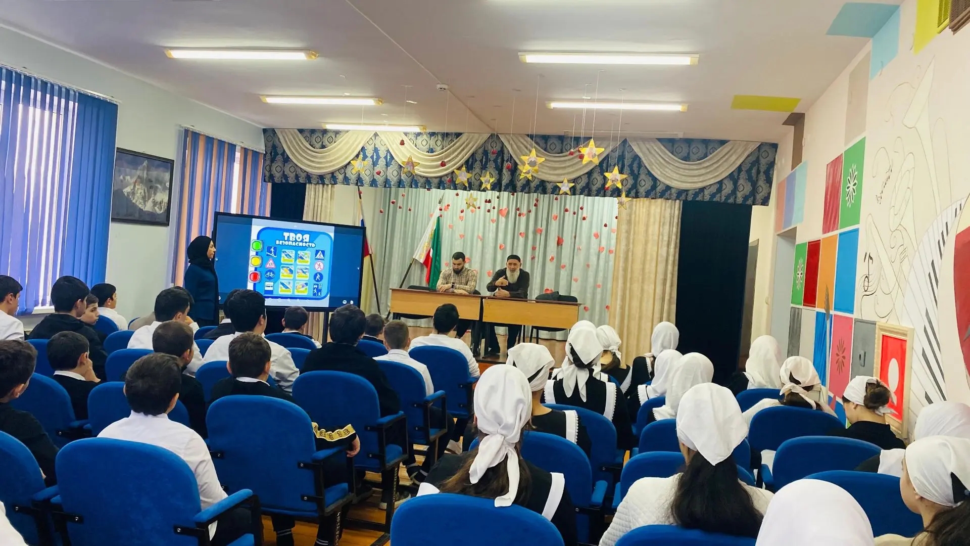 Сегодня имам села Виноградное посетил нашу школу с целью встретиться с убучающимися старшего звена. Беседа была не только о законах, но и приводились примеры из жизни. Могьмат Дугуевич рассказывал о последствиях за совершенные правонарушения. Беседа для учащихся получилась не только познавательный, но и полезной.