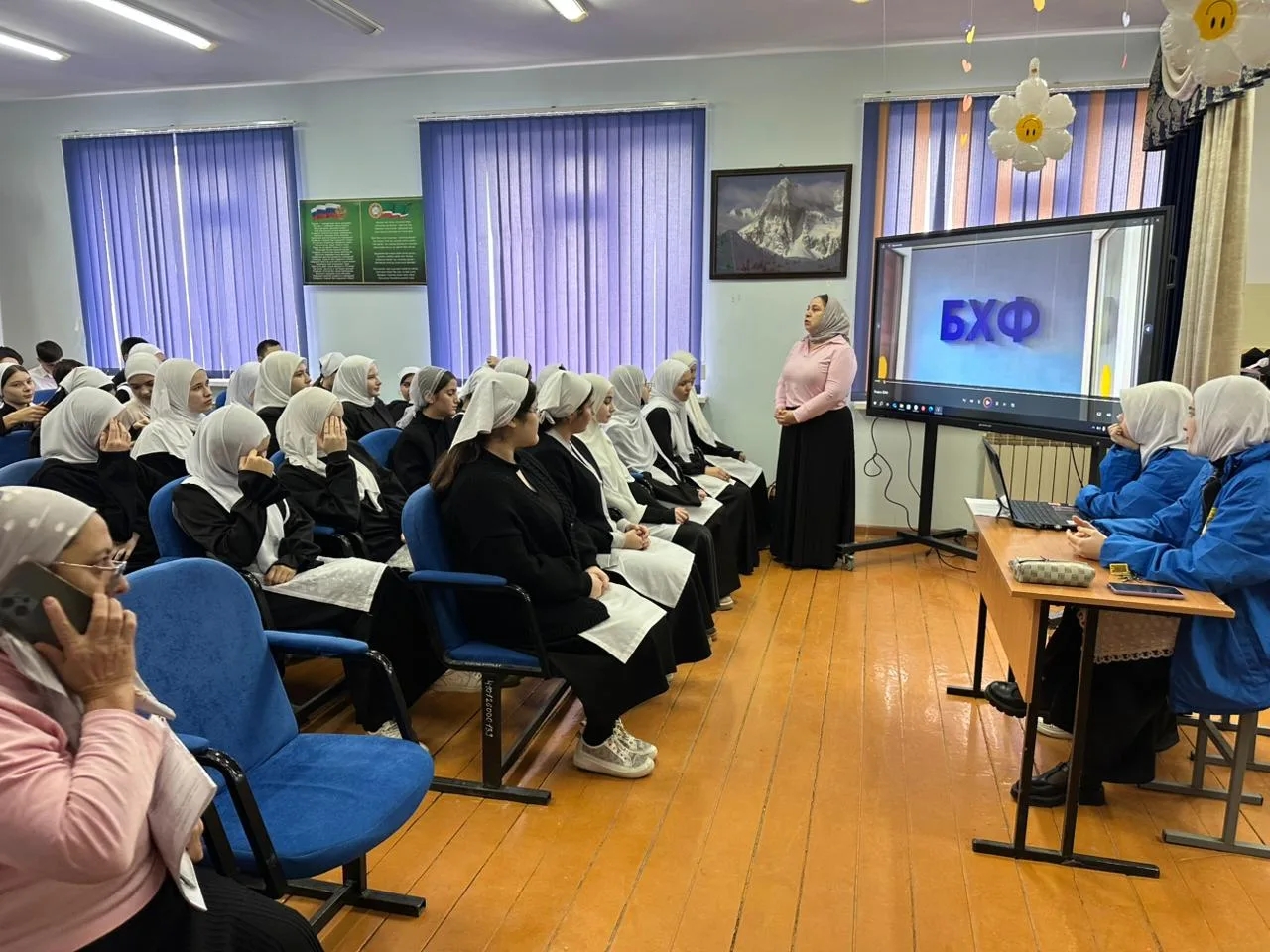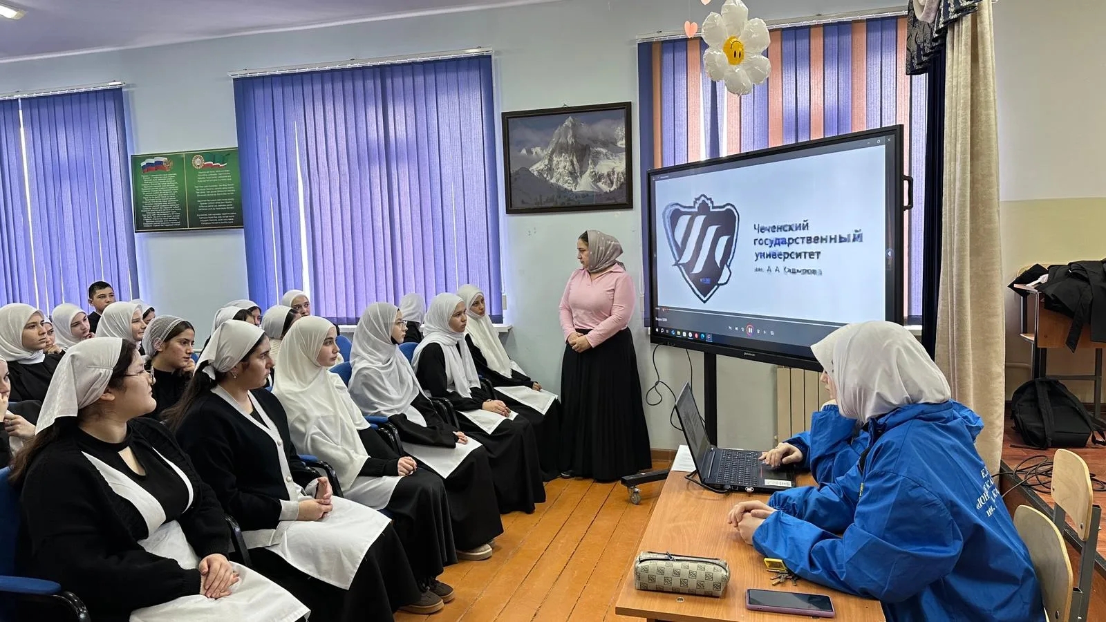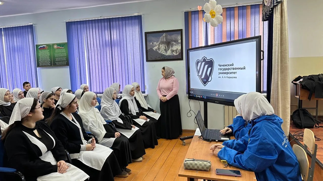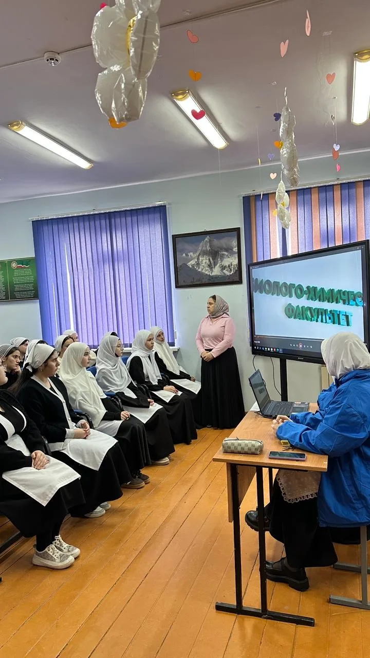 Так как между МБОУ "СОШ с.Виноградное " и ЧГУ имеется договор о профориентационной работе , в школе функционирует профильный педогогический класс, ведётся огромная работа по профориентации обучающихся в педагогические вузы. Сегодня 05.12.2025 г. была проведена лекция со старшеклассниками на тему "Биолого-химический факультет". Огромную помощь в организации встречи оказали обучающихся педкласса Зайнитова Хадижа, Илаханова Дильнара, и члены детско- юношеской организации "Юные Кадыровцы".