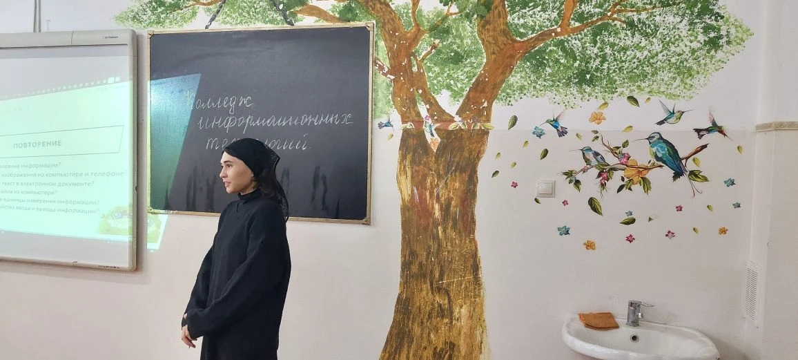 Сегодня 22.12.2025 г. В МБОУ "СОШ с.Виноградное" прошли профориентационные беседы среди 9 классов. Студентка 3 курса Колледжа информационных технологий Шуаипова Хадижа рассказала о преимуще