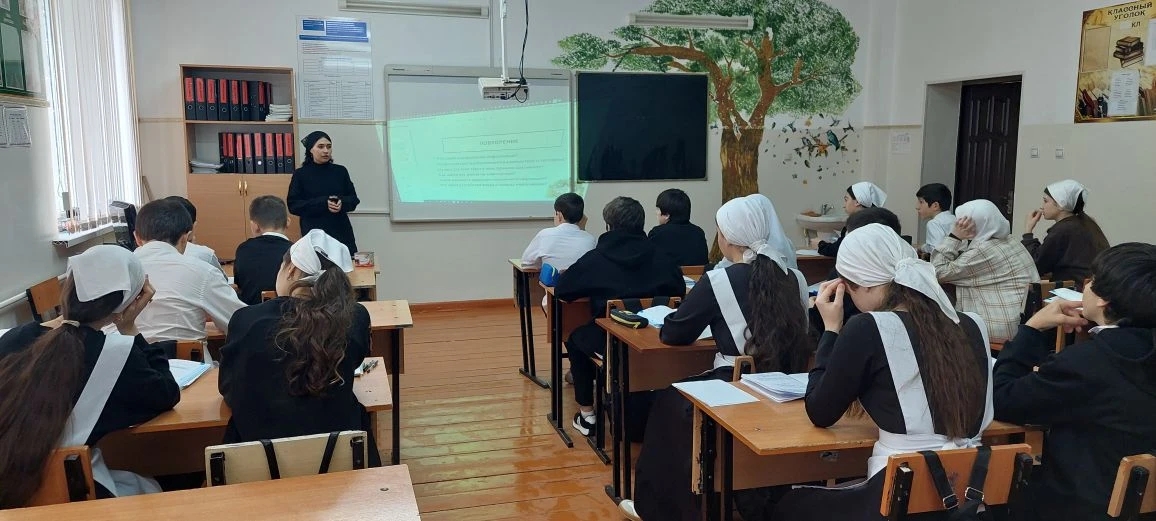 Сегодня 22.12.2025 г. В МБОУ "СОШ с.Виноградное" прошли профориентационные беседы среди 9 классов. Студентка 3 курса Колледжа информационных технологий Шуаипова Хадижа рассказала о преимуществах своего колледжа, об интересных занятиях и увлекательных мероприятиях, которые предоставляются студентам данного колледжа. Хадижа является выпускницей нашей школы, и на данный момент одна из лучших студенток Колледжа информационных технологий. Ребята заинтересованно слушали студентку, активно задавали интересующие их вопросы по поводу поступления . Беседа прошла продуктивно , учащиеся получили исчерпывающий ответы на свои вопросы