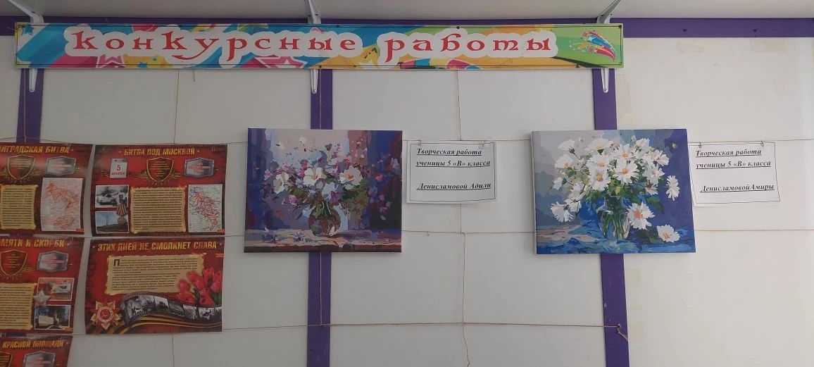 Ученицы 5 "В" класса "МБОУ СОШ с.Виноградное " с пользой провели свои каникулы. Результатом их работы стали красивые картины , которые украсили фойе нашей школы