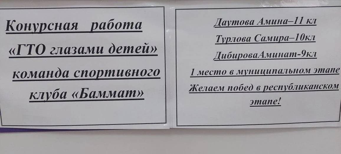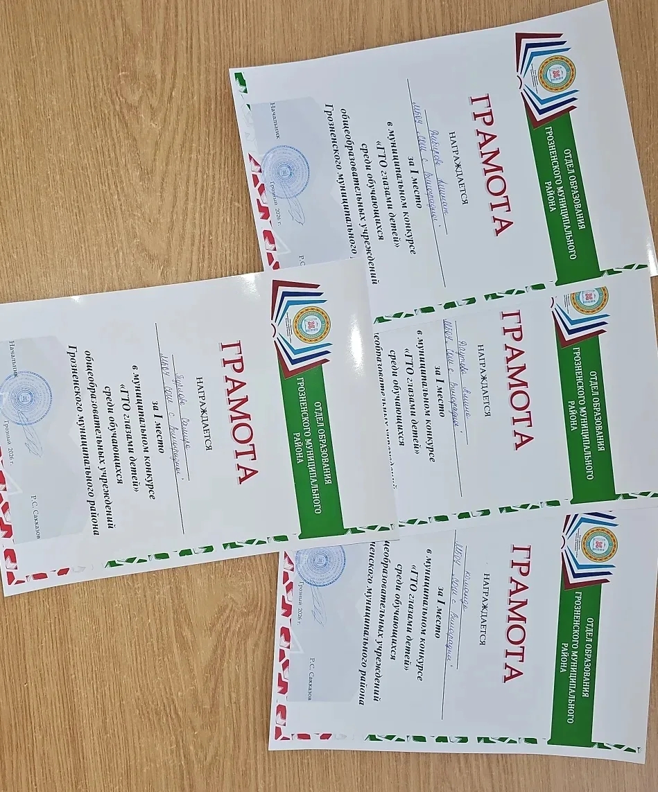 Сегодня 19.01.2026г наши ученицы : Даутова Амина -11 класс, Турлова Самира -10 класс, Дибирова Амина-9класс, участвовали в муниципальном этапе конкурса "ГТО глазами детей" который проходил среди школьных команд Грозненского муниципального района. Мы поздравляем нашу команду "Баммат"гордимся их победой. Теперь им предстоит республиканский этап, где ребята будут представлять Грозненский муниципальный район. Желаем команде "Баммат" уверенной победы на этом конкурсе!!