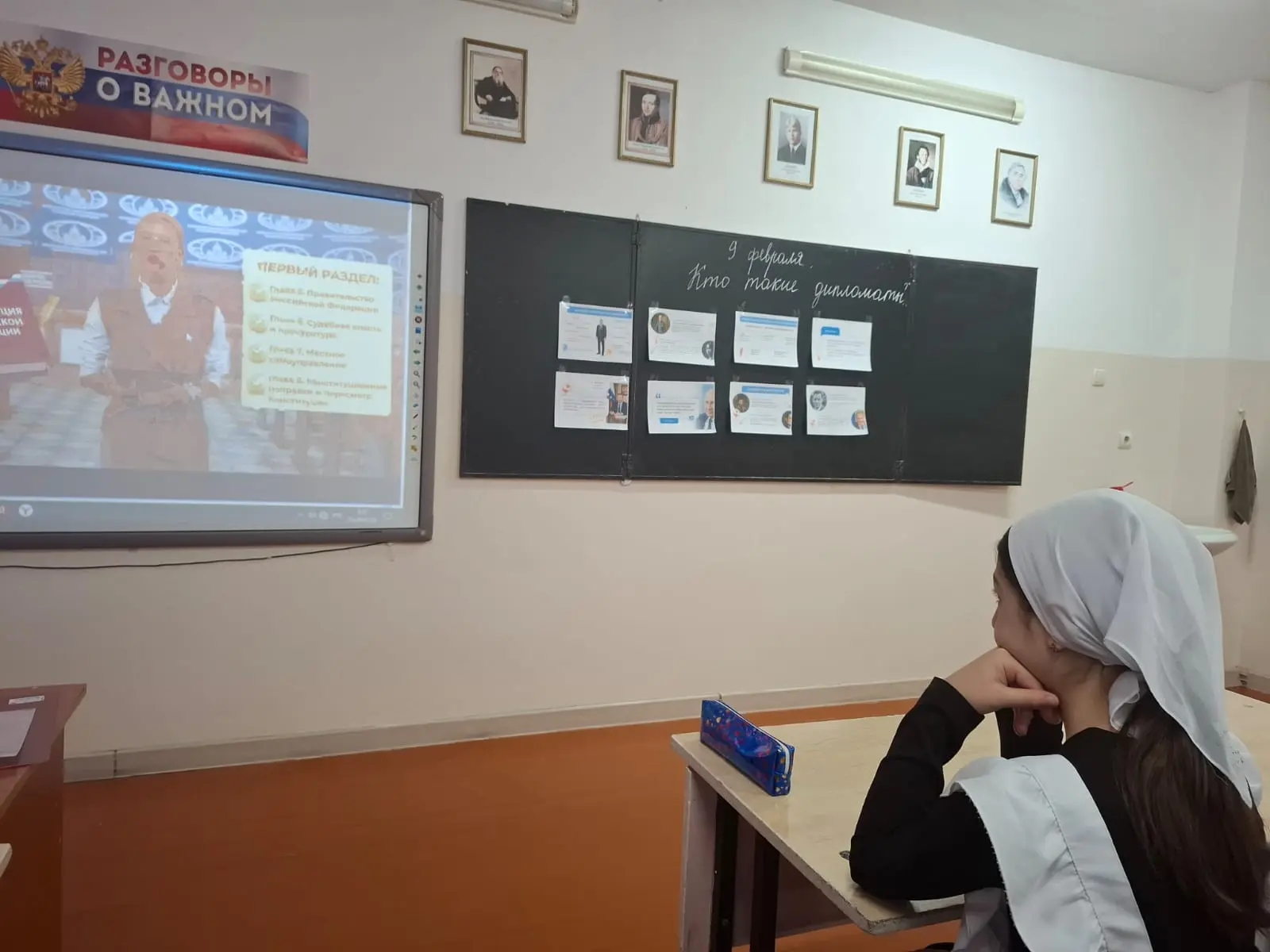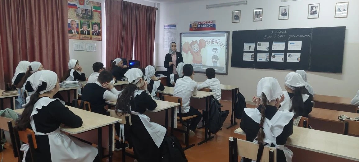 Сегодня в МБОУ"СОШ С.ВИНОГРАДНОЕ " утро , по традиции, началось с поднятия флагов РФ и ЧР. Первый урок Разговоры о важном ,прошёл по теме "Кто такие дипломаты?". Ребята познакомились с искусством дипломатии-важнейшим инструментом международного общения и сотрудничества. Узнали, что дипломат это мастер общения, слушания и поиска решений. Дети пришли к выводу, что мир начинается с диалога, а диалог начинается с нас. Каждый из нас развивая необходимые навыки, может стать дипломатом в своей жизни, в семье, в классе, в компании друзей