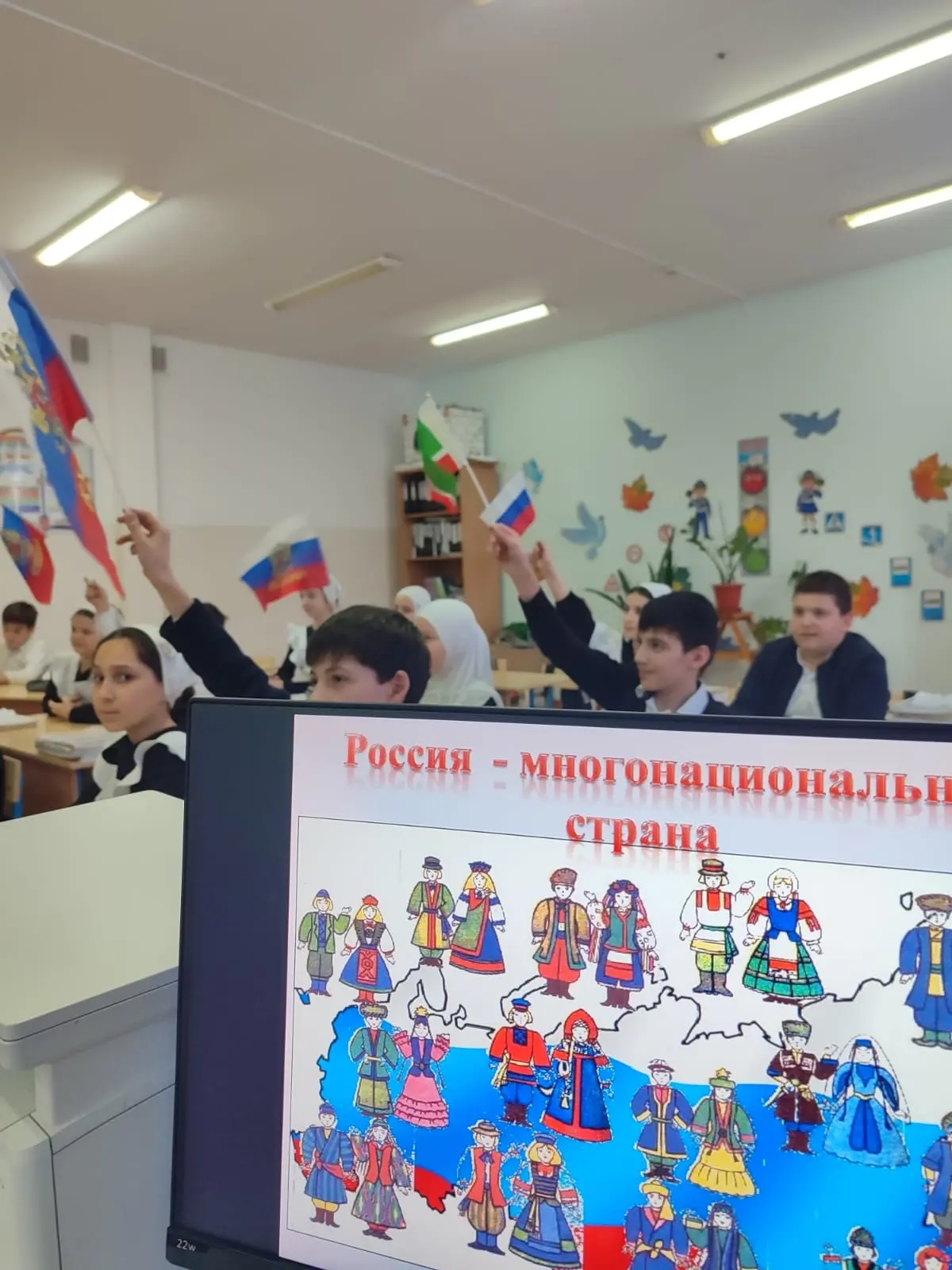 Сегодня в нашей школе прошли классные часы и беседы на тему " Россия много национальная страна". Цель : воспитание уважения к культуре народов РФ. Мероприятия направлены на укрепление дружбы между народами и понимание России как общего дома