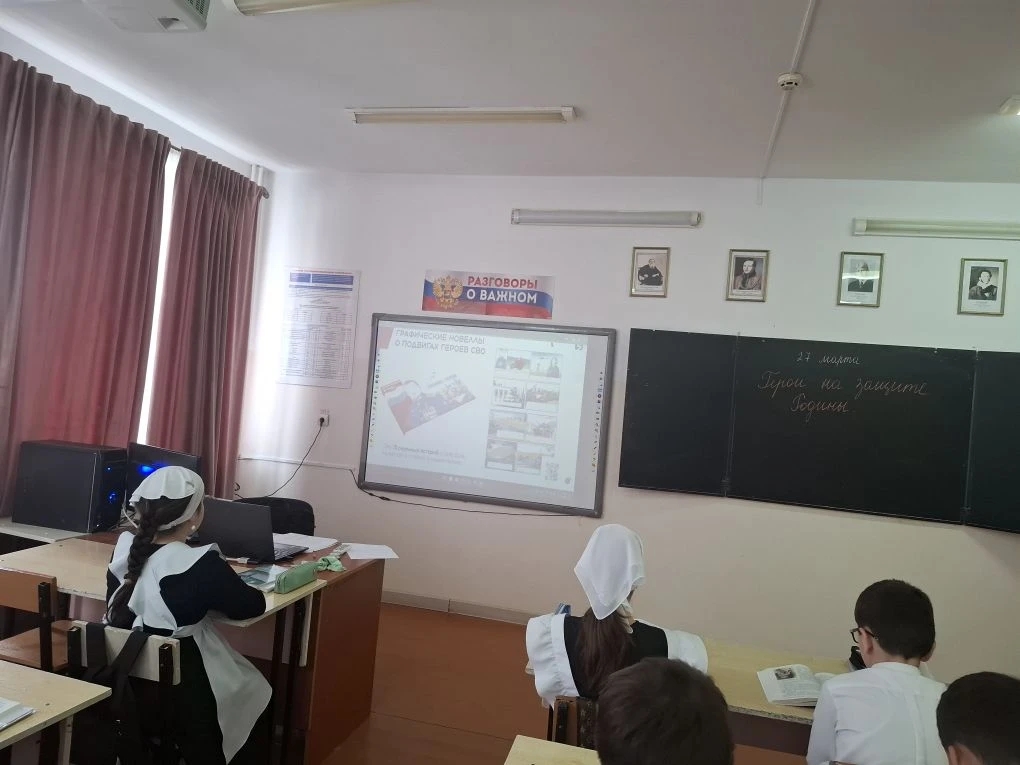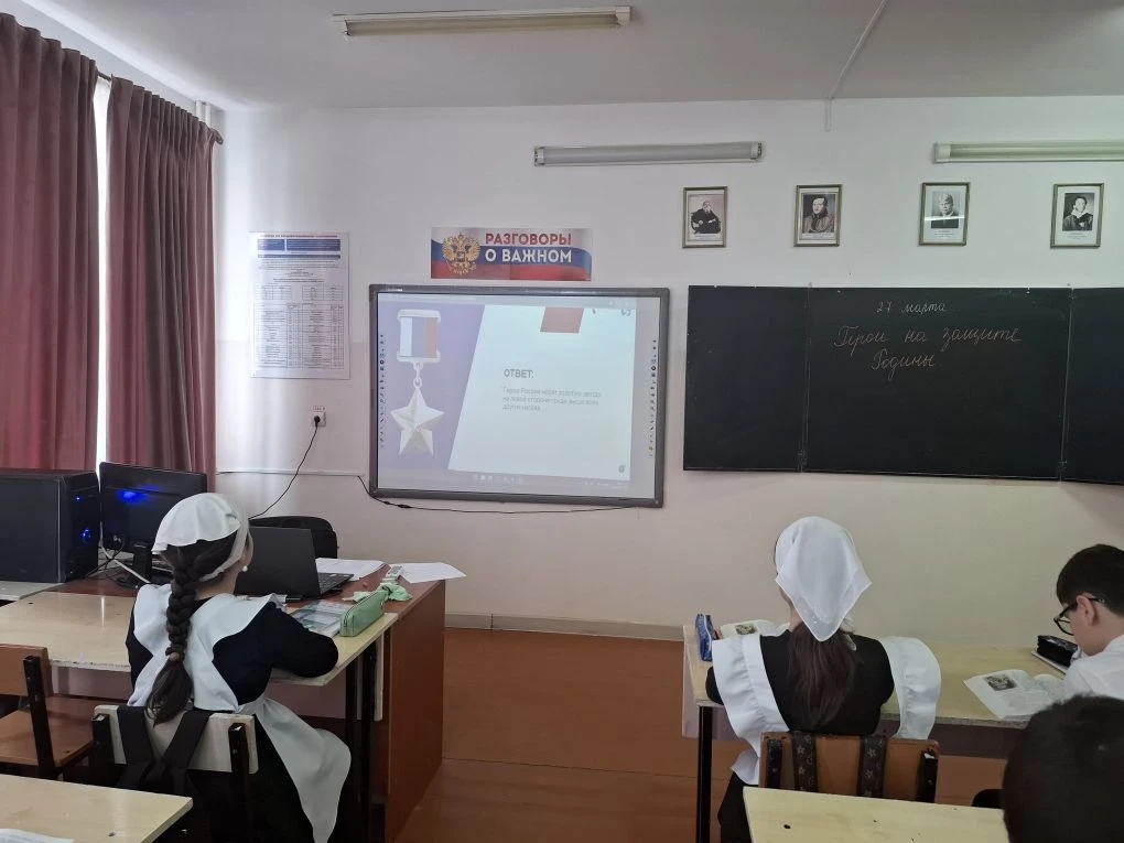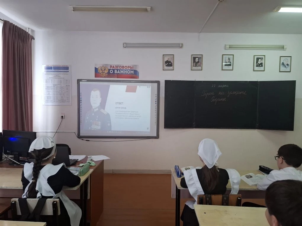 Сегодня 27.03.2026 г. В нашей школе среди учеников 5-9 классов прошли лекции по теме "Знания о героях". В ходе лекции учащиеся обсудили вопросы важности сохранения исторической памяти и популяризации подвигов защитников Отечества-Героев Российской Федерации, участников и ветеранов специальной военной операции.