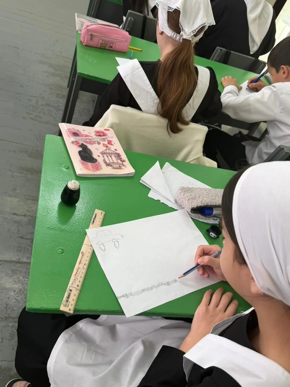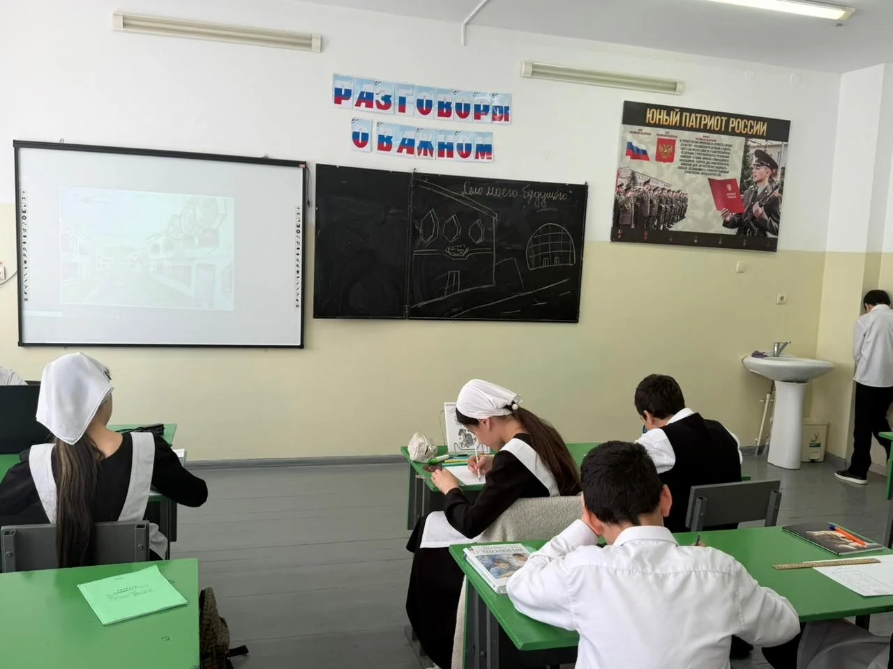 Сегодня 15.04.2026г, ученики 5 - 6 классов, на уроках рисования, рассказали о своих мечтах. Они фантазировали на тему каким будет наш мир через несколько десятилетий и как в будущем будут выглядеть наши города и села? С помощью карандашей, фломастеров и красок ребята воплотили свои мечты на обычных листах бумаги и создали свой микромир, где возвышаются фантастические здания, а люди передвигаются на необычном транспорте в окружении гостей с других планет.