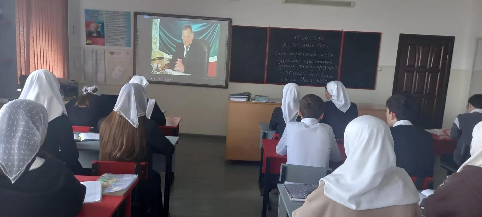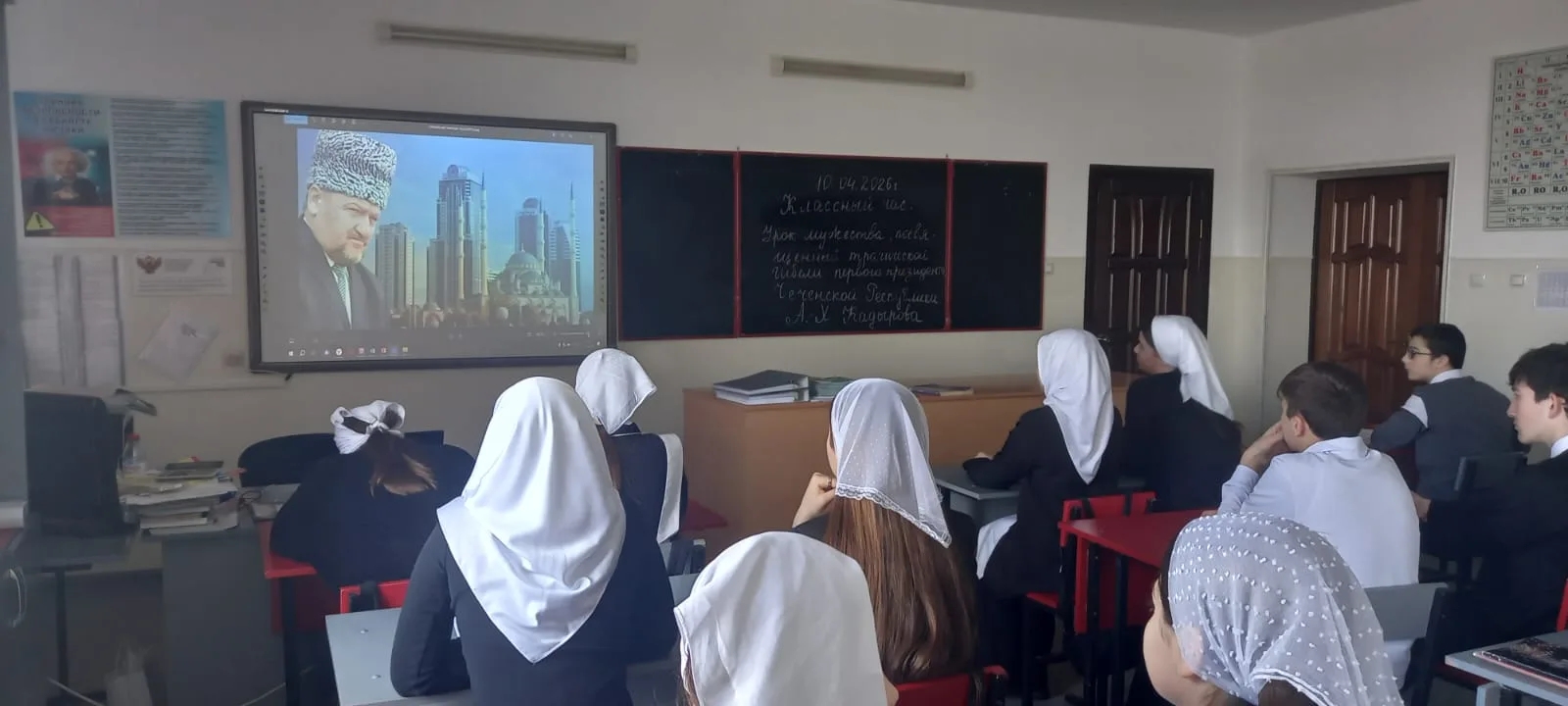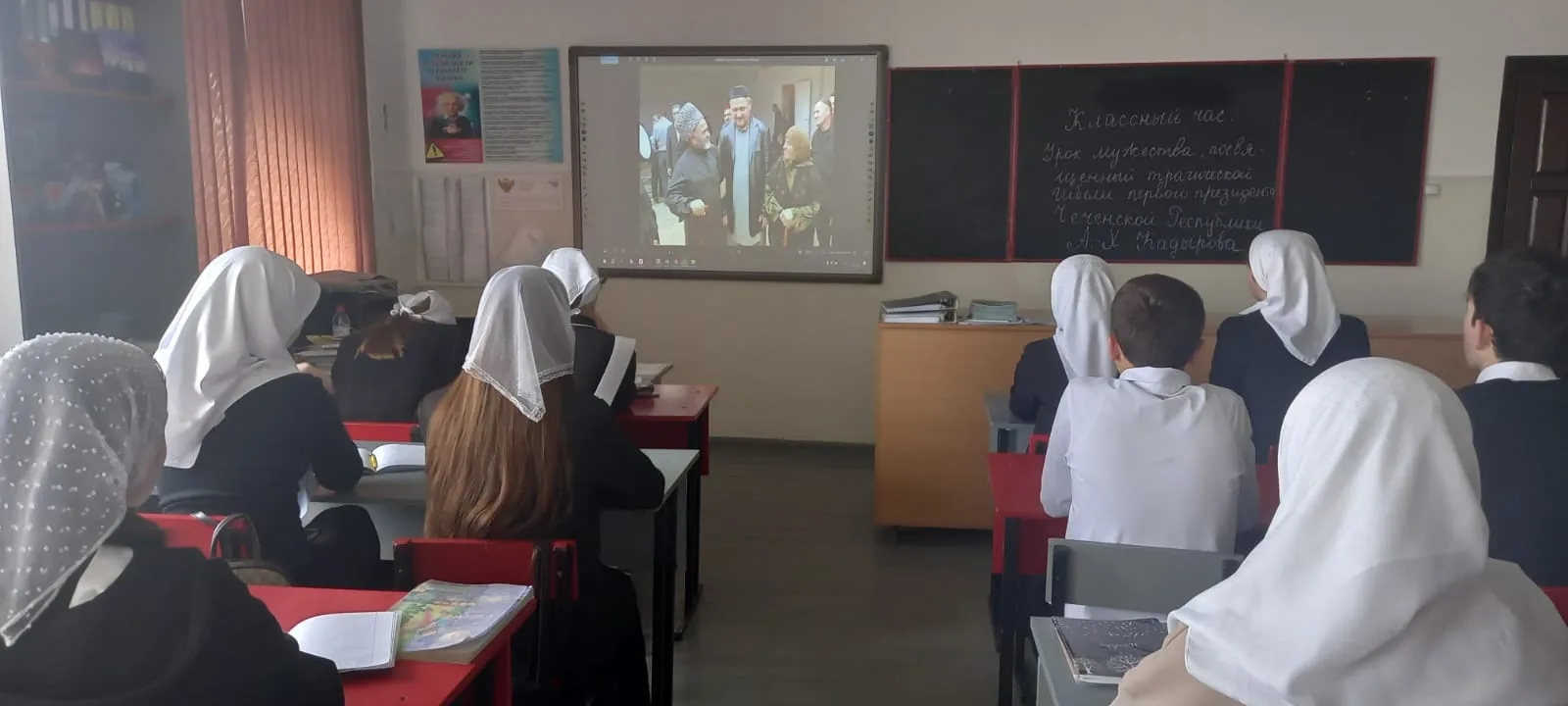 Сегодня в нашей школе прошли классные часы, посвященные жизненному пути Ахмата-Хаджи, его политической деятельности и трагической гибели 9 мая 2004 года. Классные руководители рассказали о трагедии, в которую оказался втянут чеченский народ в середине 90-х годов прошлого столетия, и о взошедшем на политический олимп общественно-политическом и религиозном деятеле Ахмата-Хаджи. Обрисовали общую ситуацию в республике после завершения активной фазы военных действий. Разруха, хаос, царивший в республике и многочисленные жертвы от рук экстремистов. Ахмат_Хаджи Кадырову благодаря личному мужеству, самоотверженности и всеобщей народной поддержки удалось, сравнительно за короткий период, остановить беспредел в республике и направить ситуацию в конструктивное русло. Он указал нам путь к мирному развитию, который сегодня продолжает достойный сын своего отца Глава ЧР, Герой России Рамзан Кадыров.