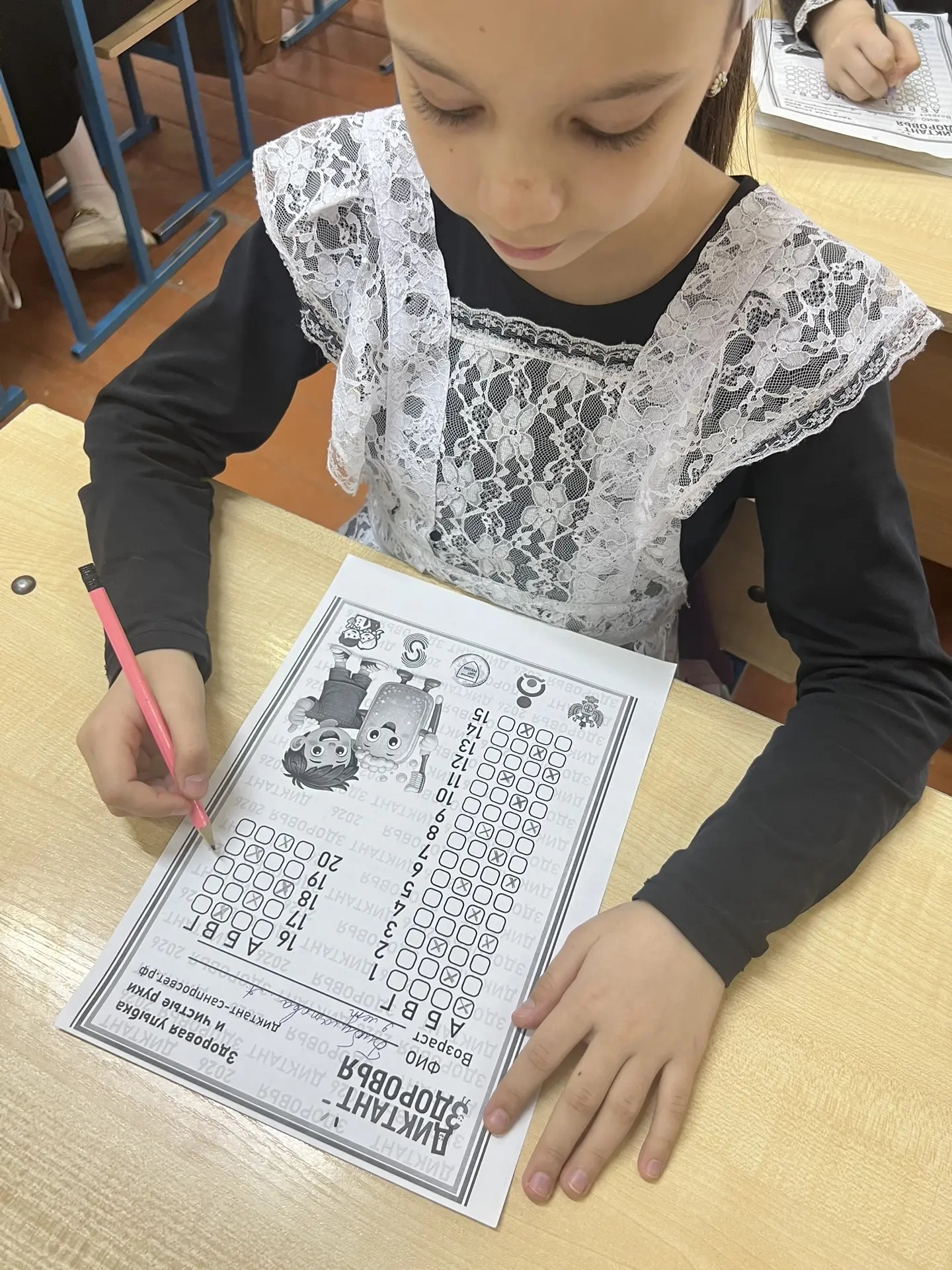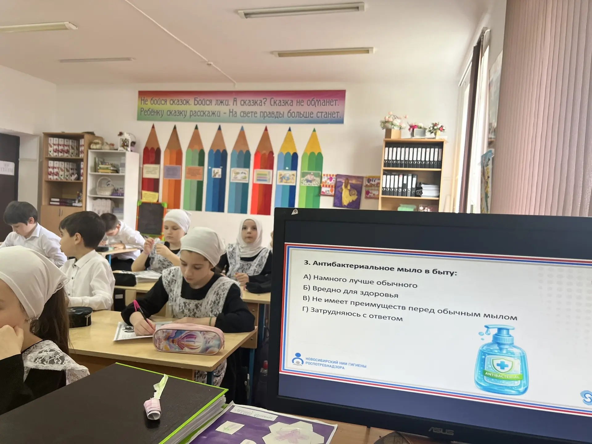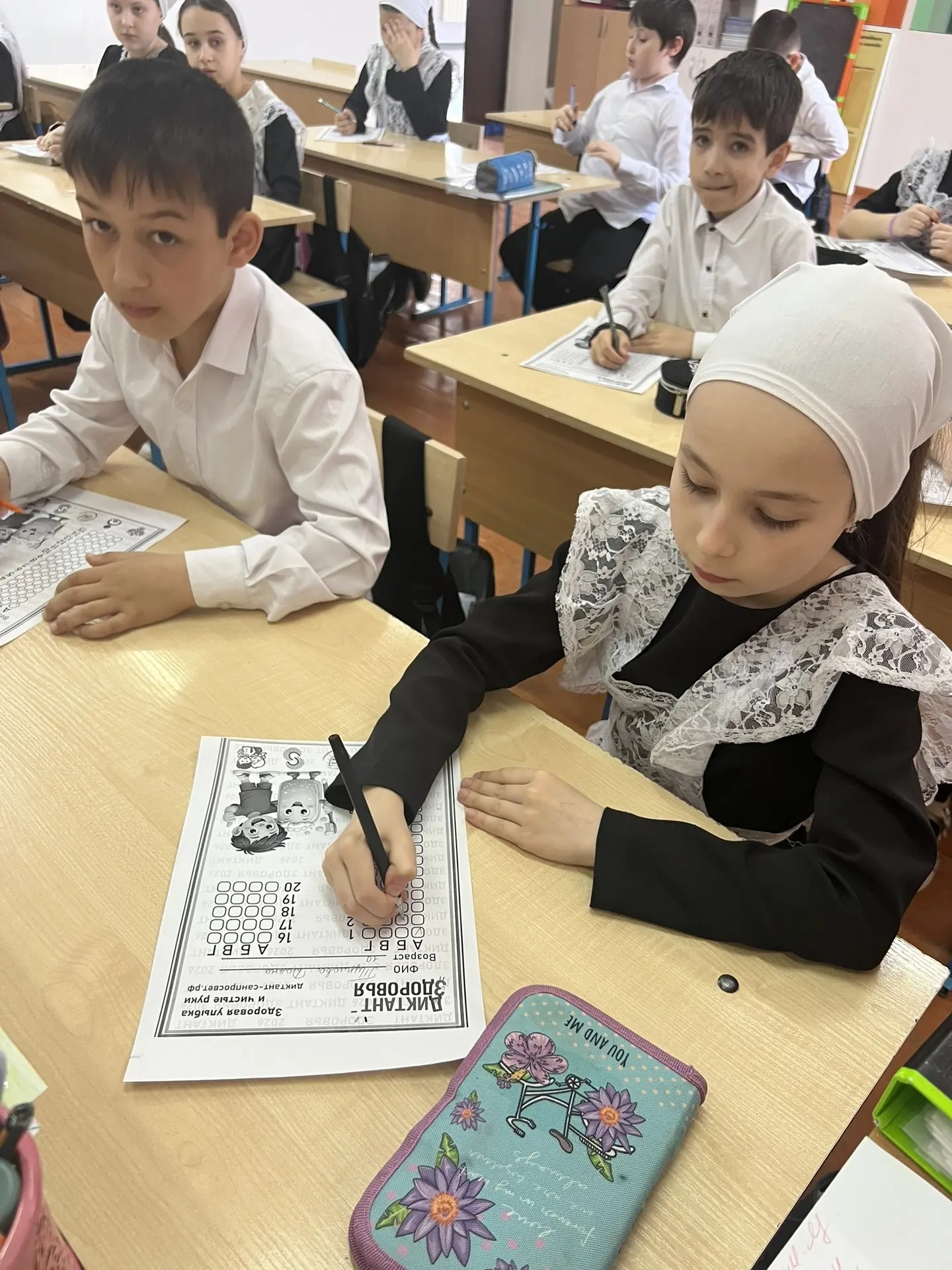 Сегодня эстафету "Диктант здоровья" приняли наши младшие братишки и девченки. Они прошли первый модуль "Здоровая улыбка и чистые руки". Диктант начался в 14.00 и завершился в 14.45 по местному времени. Учитель обратился к ребятам со словами"Здоровье-это не только отсутствие болезней, но и сформированы привычки"